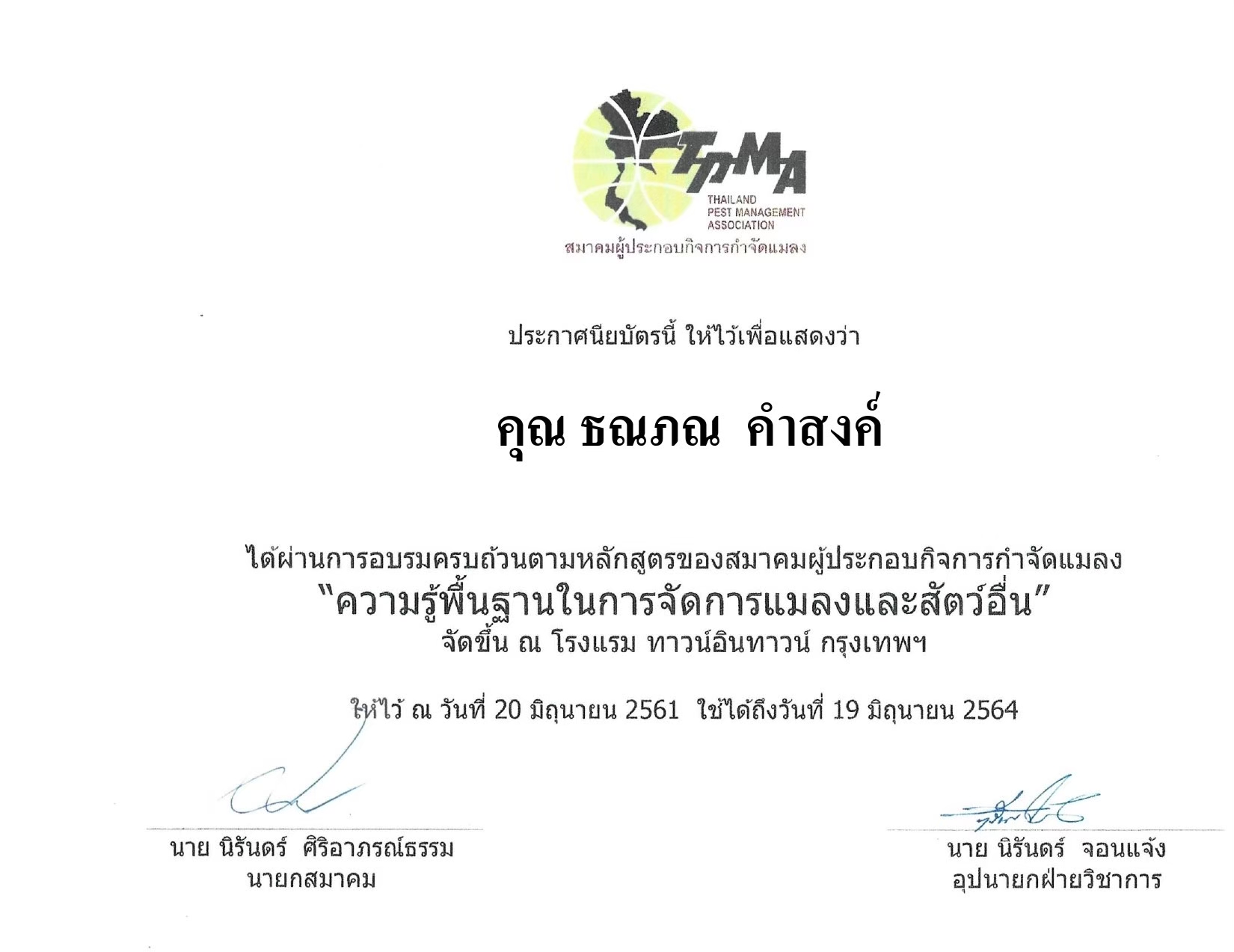 - รู้จริงแก้ปัญหาได้ เพราะทีมผู้บริหารและทีมงานผู้ปฏิบัติงานภาคสนาม ผ่านการอบรมความรู้ด้านการกำจัดปลวก กำจัดแมลง กำจัดสัตว์ฟันแทะ จาก ที่ปรึกษาและนักวิชาการผู้ทรงคุณวุฒิ ด้านการควบคุมการใช้วัตถุอันตรายเพือการใช้รับจ้างกําจัดแมลงพาหะนำโรค กำจัดหนู ในบ้านเรือนทางสาธารณสุข มีความชำนาญรู้จริงในการแก้ปัญหาเรื่องปลวก แก้ปัญหาเรื่องแมลงพาหะนำโรคและแมลงรำคาญอย่างเห็นผลจบปัญหาได้จริง